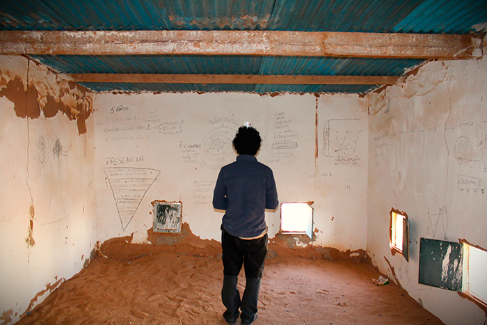 Por la mañana, poco antes de las nueve, Banani pone la tetera en el fuego y sale a fumar. Se olvida del tiempo más allá del propio cigarro consumiéndose. De repente, oye un chirrido y corre para evitar que se derrame. Luego visita su antigua casa. Suele cobijarse en la que fue su habitación. La luz entra por tres saeteras a la altura de la tibia. Paredes corroídas, entrañas de arena semidesnudas. Un tablón central, y un par más delgados en los extremos, soportan el techo. «Todavía resiste», comenta. Este espacio le ayuda a aclarar ideas y a no alejarse de aquello que lleva soñando desde hace más de una década.