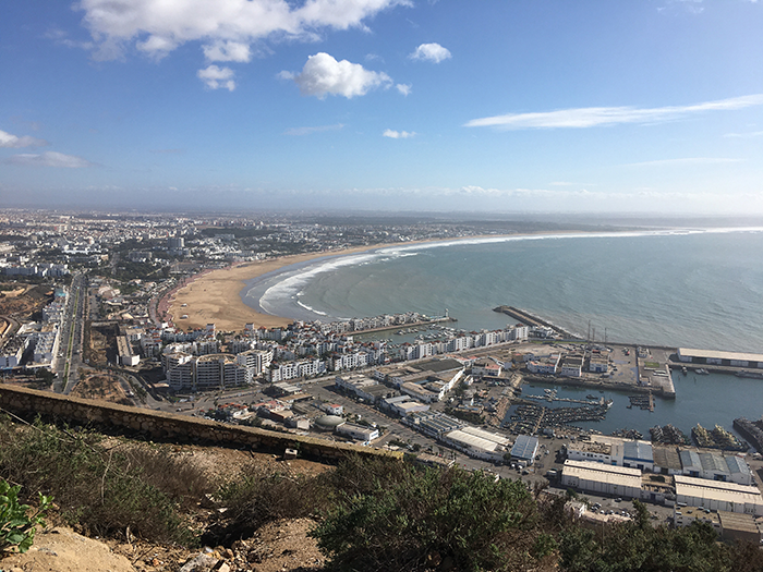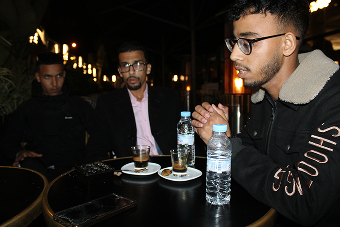 Bajan las escaleras y salen hasta la terraza. En dos mesas apartadas en un rincón les esperan otras dos personas. Hace varios minutos que una furgoneta gris se oculta estacionada enfrente, al doblar la esquina. Hafed Berman, el joven de gafas, se sienta. A su lado, Brahim Babia, de cara huesuda y perilla morena, mueve la cabeza de un lado a otro. Y Jafet Abdel Bashir, el más callado, inclina el cuerpo hacia la mesa para escuchar mejor las preguntas. Los tres veinteañeros nacieron en la mitad del Sáhara Occidental que Marruecos ocupó hace medio siglo y se instalaron en esta ciudad costera para estudiar. En «su país» hay un campus universitario, el de Tifariti, pero se encuentra al otro lado de un muro infranqueable. Por eso Berman, Babia y Bashir se han visto obligados a dirigirse al norte. Esta frontera sí pueden cruzarla sin arriesgar su vida, porque esta parte del Sáhara es, a efectos prácticos, una provincia más del reino magrebí.